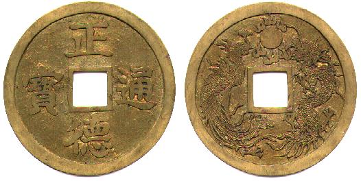 | Obv. | Cheng Te T'ung Pao Coinage of True Virtue |