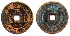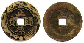 | Obv. | Cheng Te T'ung Pao Coinage of True Virtue Decorated rim with dragon and phoenix |