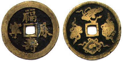Obv. | Fu Shou - happiness and longevity Kang Ning - health |