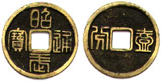 "In 1674 Wu San Kuei (see Li Yung coins) usurped the throne and in 1678 he changed his year title to Chao Wu and cast the Chao Wu T'ung Pao coin." [S]